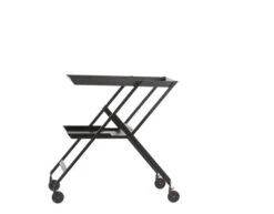 Plico is a folding trolley in steel colored with epoxy resin in black. The shelves are polyurethane.